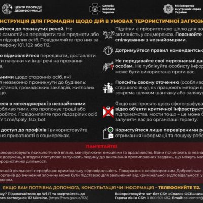Центр протидії дезінформації спільно зі Службою безпеки України та Міністерством внутрішніх справ України розробили для громадян інструкцію щодо дій в…